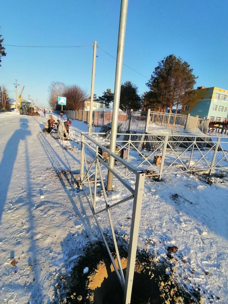 Идет монтаж ограждений пешеходного перехода у второй Седельниковской школы. Фото Алексея Бастрона.