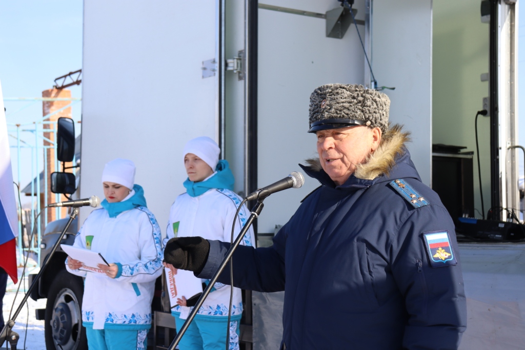 Патриотические мероприятия 25 февраля в Седельниковском районе начались с марш-броска курсантов Омской академии МВД, которые прошли свою пятикилометровую дистанцию по снежному полю вдоль автодороги Голубовка – Седельниково. Встречая их, Герой Советского Союза полковник Николай Васильевич Кравченко отметил: