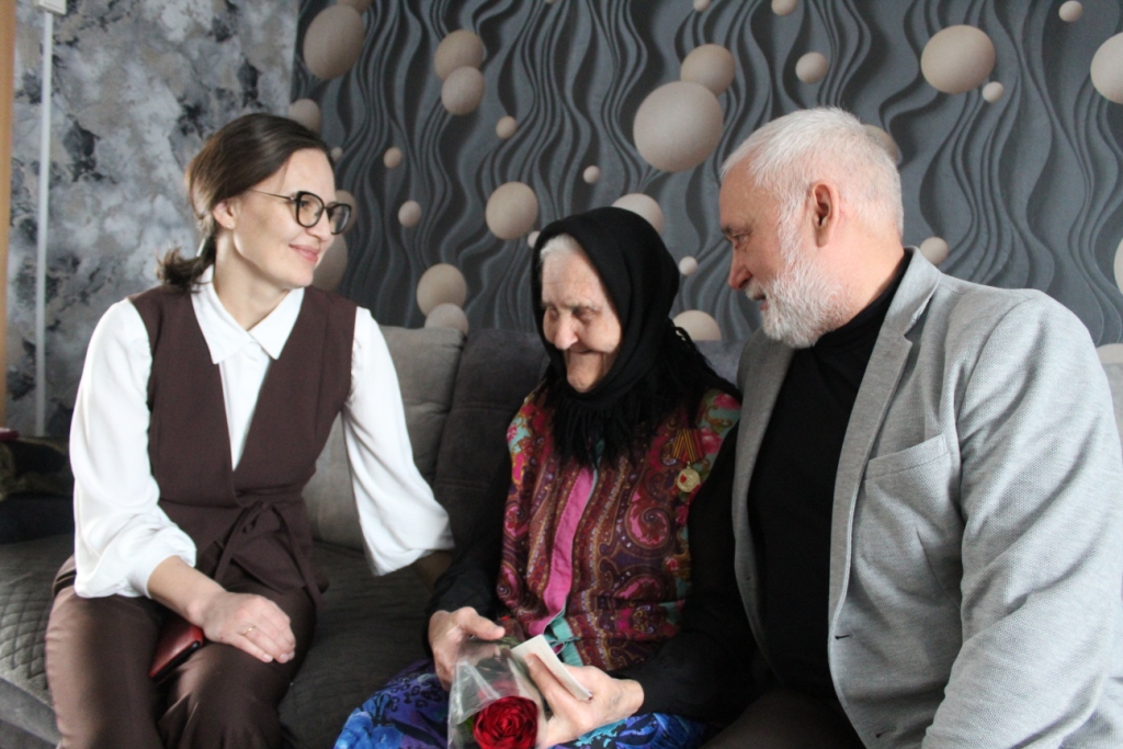 Все они уже перешагнули 90-летний возраст. Во время войны, они детьми трудились в колхозах района и чем могли, помогали фронту. В этот день Владимир Ильич и Елена Олеговна побывали в гостях у Дарьи Никифоровны Павленко, трудившейся в годы Великой Отечественной в колхозе в деревне Лебединке Седельниковского района.