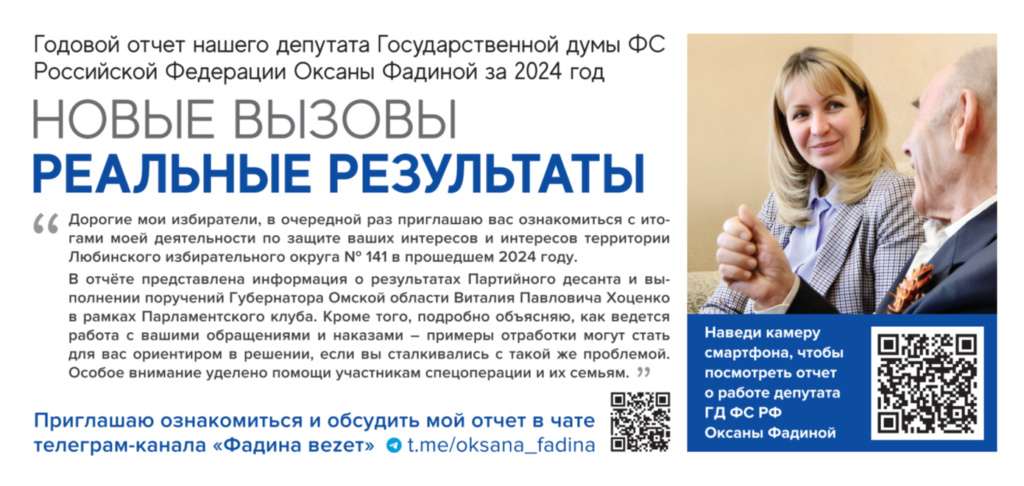 Нынешний год не стал исключением. В телеграм-канале «Фадина вezет» можно познакомится с его полным текстом, а также принять участие в обсуждении инициатив депутата.