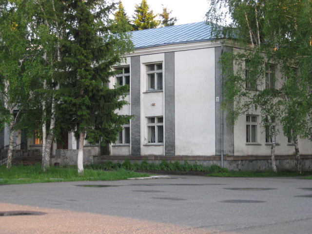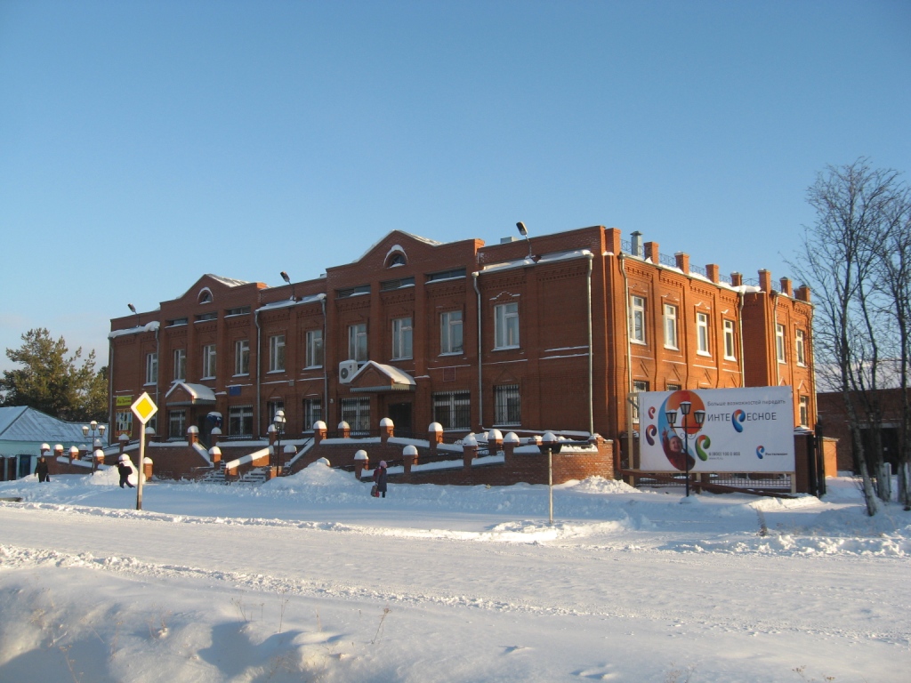 Напротив госбанка, на другой стороне переулка, стояла семилетняя школа. Это деревянное здание было построено в 1925 году и дожило до сегодняшних дней. В последнее время здесь располагалась Седельниковская школа искусств, которая в 2020 году переехала в бывшее здание районного узла электрической связи – в двухэтажное кирпичное, которое начало возводиться в 1997 году, а введено в эксплуатацию было в 2000-м.