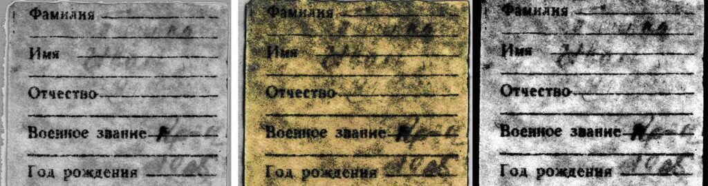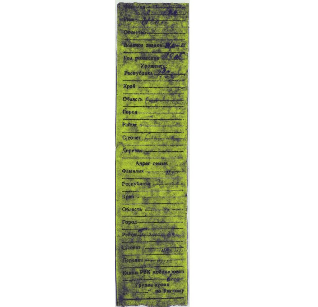 Были установлены имя – Иван, год рождения – 1905, место рождения и адрес семьи: Омская область, Полтавский район, Ольгинский сельсовет, село Ольгино. В фамилии с некоторой вероятностью угадывались первая буква «Т» и окончание «…нко», в отчестве – первые две буквы «Ма…». А вот вторая половинка вкладыша оказалась не заполненной.