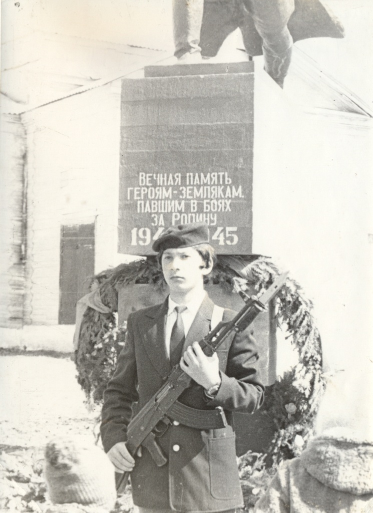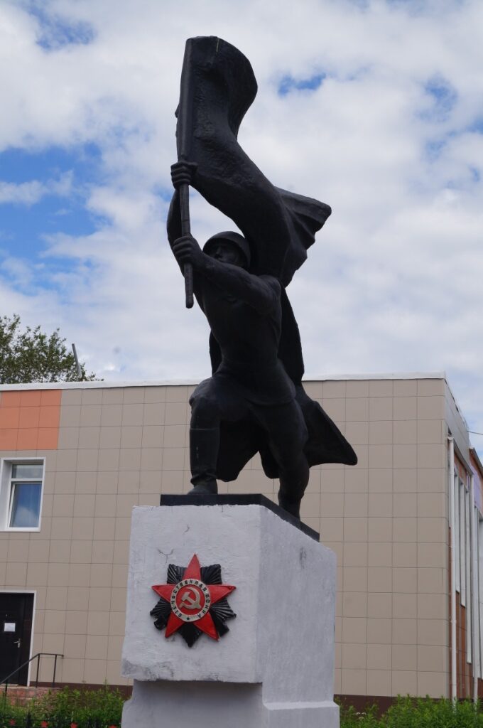 Звучит траурная мелодия. К памятникам райцентра возлагаются гирлянды и венки. Реют над головами людей флаги и знамена, лишь одно застыло в вышине – то, что на пьедестале в руках у солдата, рванувшегося вперед, в бессмертие…»