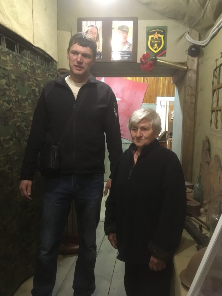 – От себя скажу, что мать осталась очень довольной. Ее встретили, все показали и рассказали. Два парня – это ребята, которые проводили раскопки. Они приехали на встречу за 200 километров. Сходили с мамой на могилу её отца, моего деда, проводили её в музей. Директор показал экспонаты. Фото за столом с портретом деда и поминальной рюмкой – это тоже благодарность директору музея. Вместе помянули солдата.
