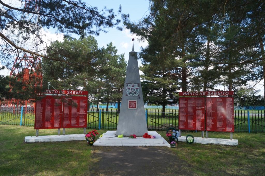 К 9 мая была сделана металлическая пирамида, увенчанная красной звездой. Она была установлена на бетонном двухступенчатом постаменте. Общая высота обелиска 510 см, в том числе первая ступень – 18 см, вторая – 25 см. Ширина постамента 311см. Ширина нижней части пирамиды 145 см, верхней – 23 см. На лицевой стороне пирамиды изображён орден Отечественной войны I степени и табличка с надписью «Воинам-землякам, погибшим в Великой Отечественной войне 1941-1945 гг.». Высота таблички с орденом – 61 см, ширина – 62 см. Размеры таблички с надписью 41 на 41 см.