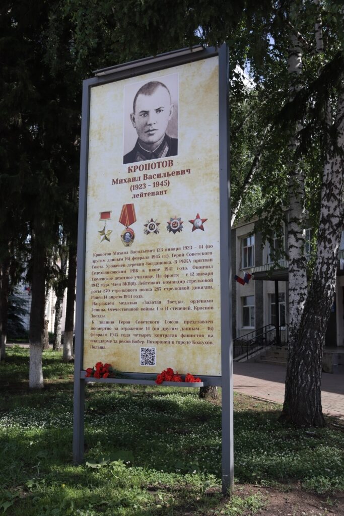 Памятная стела подвигу Михаила Кропотова и бойцов его роты, установленная по инициативе депутата Совета Седельниковского района Евгения Кужелева