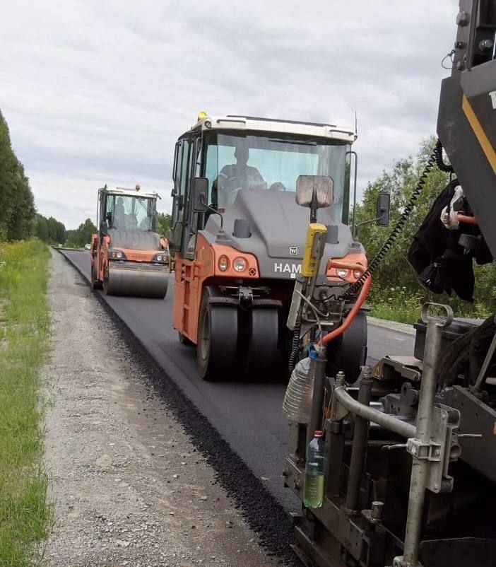 Подрядная выполнила комплекс работ, включающий устройство укрепление основания методом холодного ресайклинга с добавлением щебеночно-песчаной смеси и цемента, укладке двух слоев асфальтобетонного покрытия.