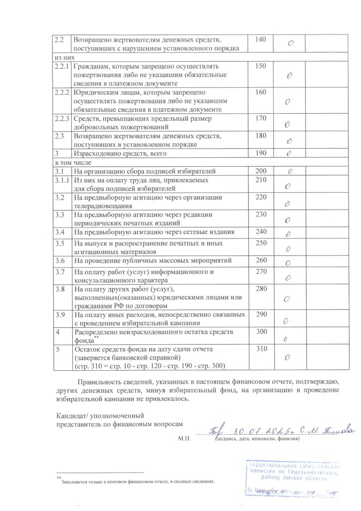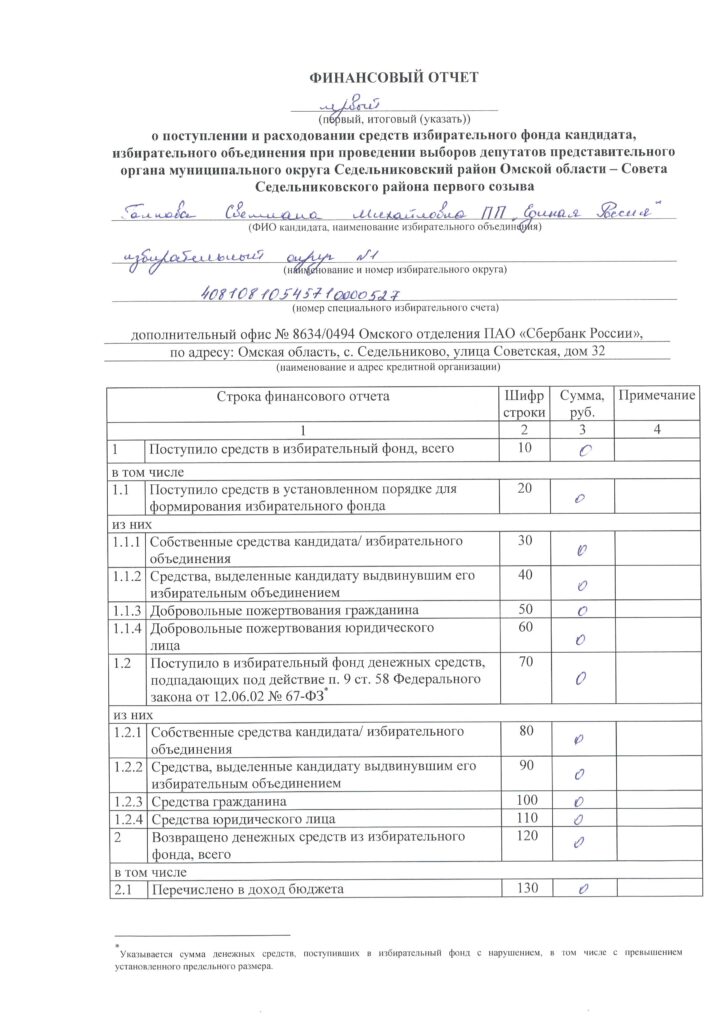 Мы публикуем финансовый отчет о поступлении и расходовании средств избирательного фонда кандидата Галковой Светланы Михайловны по избирательному округу №1