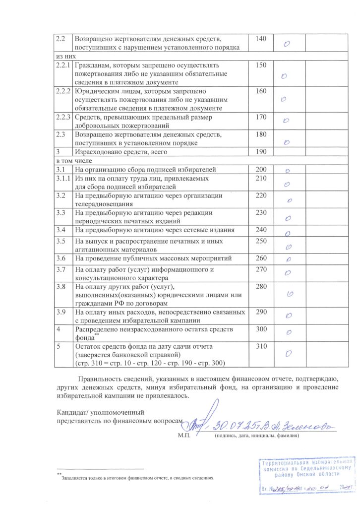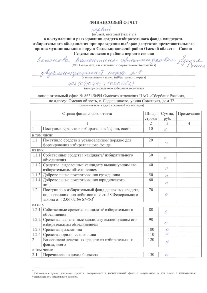 Мы публикуем финансовый отчет о поступлении и расходовании средств избирательного фонда кандидата Зеленовой Валентины Александровны по избирательному округу №7