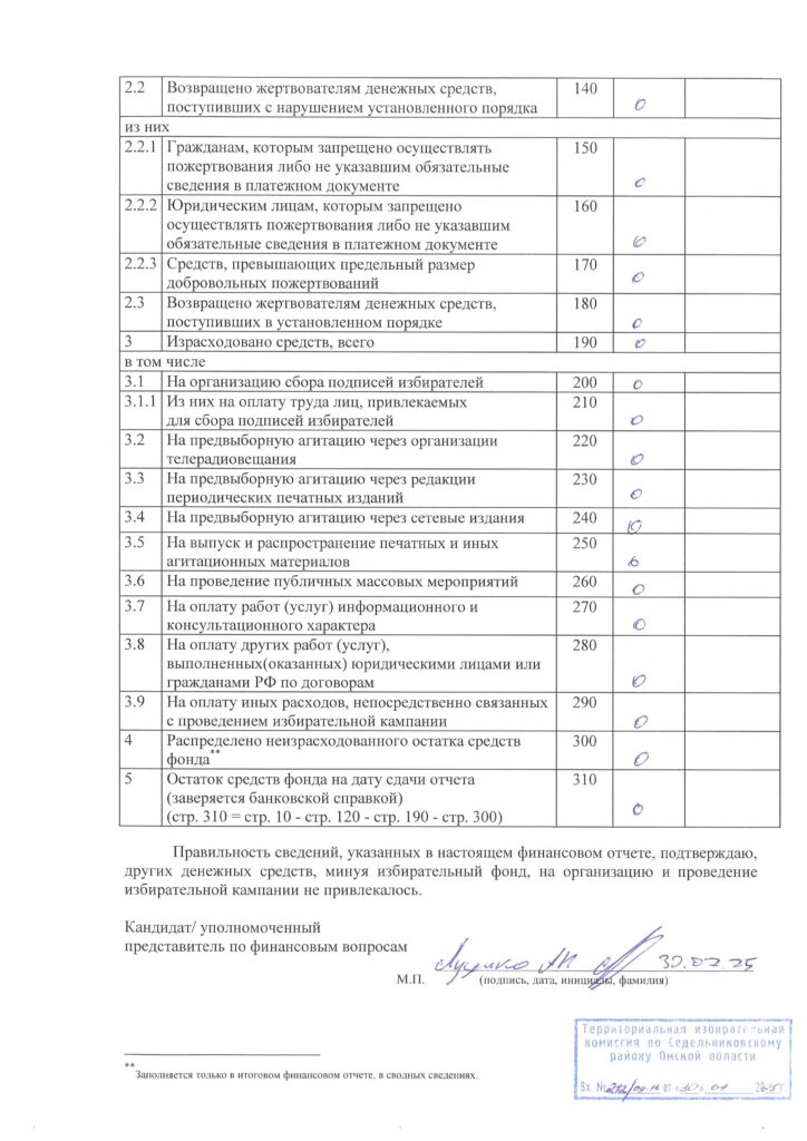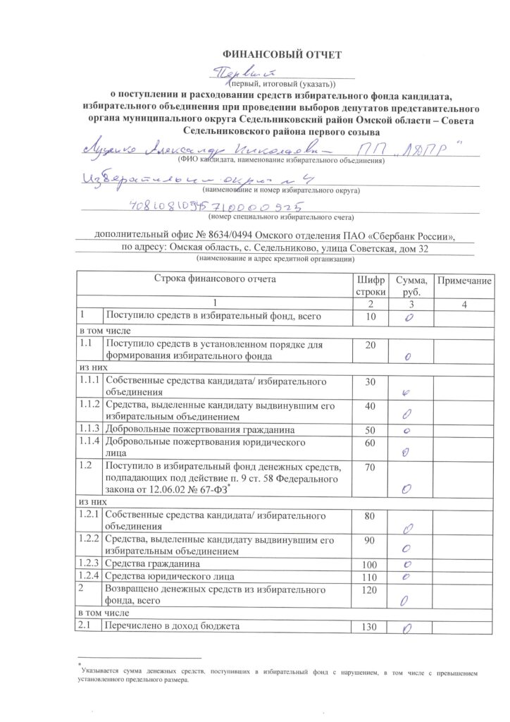Мы публикуем финансовый отчет о поступлении и расходовании средств избирательного фонда кандидата Луценко Александра Николаевича по избирательному округу №4