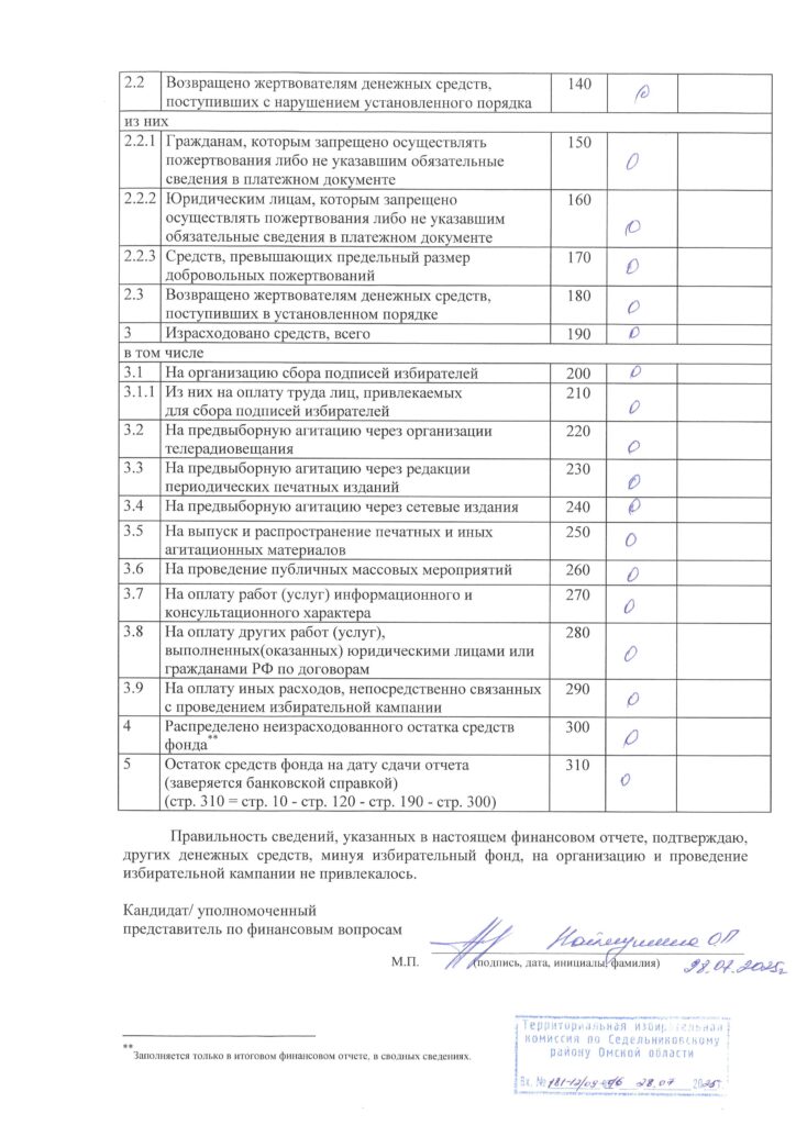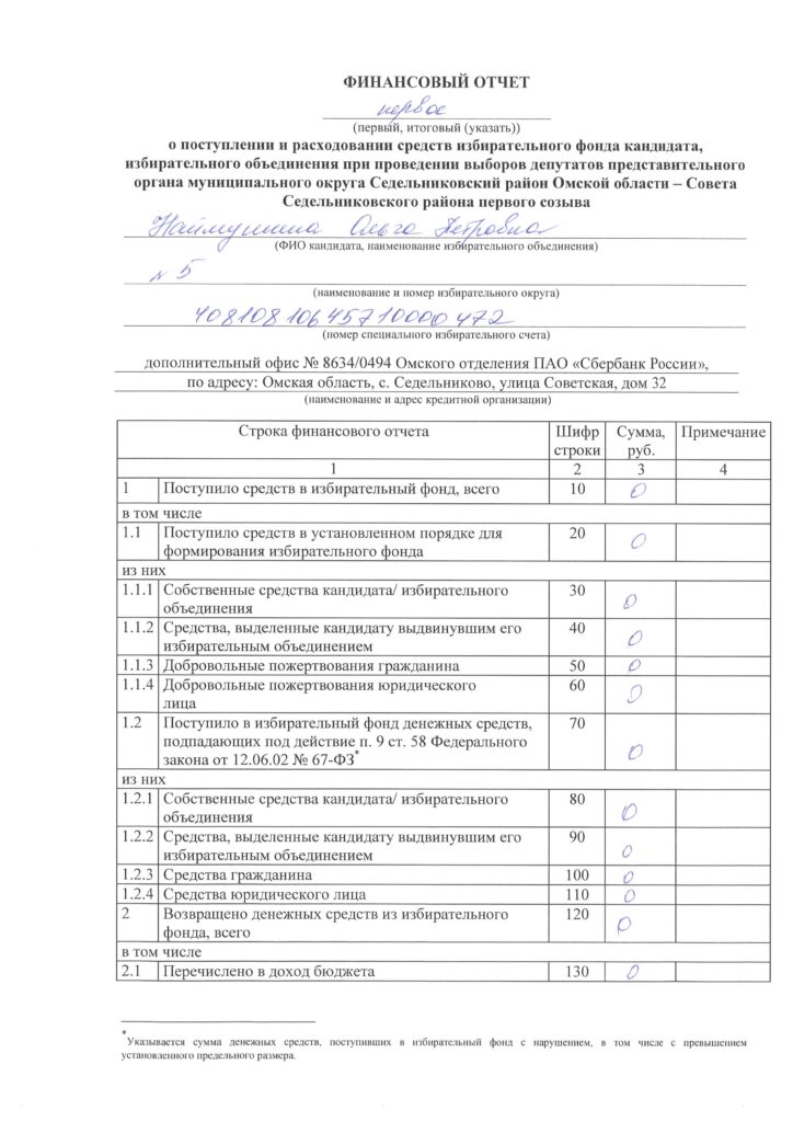 Мы публикуем финансовый отчет о поступлении и расходовании средств избирательного фонда кандидата Наймушиной Ольги Петровны по избирательному округу №5