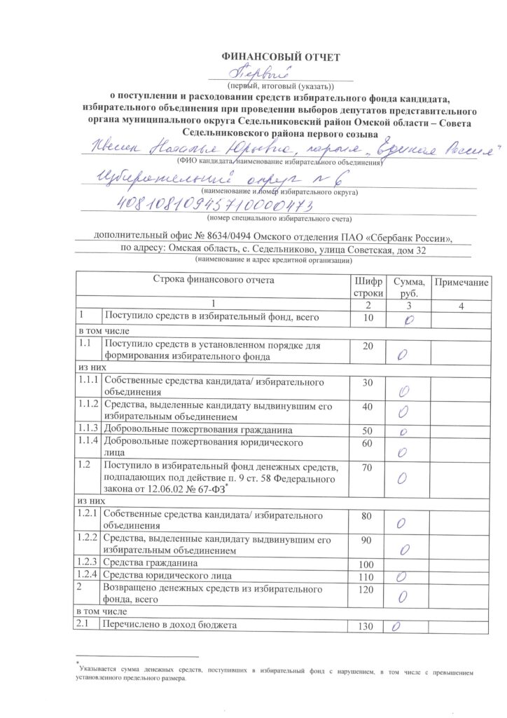Мы публикуем финансовый отчет о поступлении и расходовании средств избирательного фонда кандидата Хвесик Натальи Юрьевны по избирательному округу №6