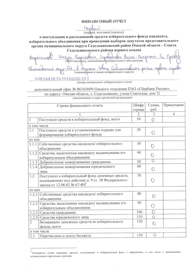 Мы публикуем финансовый отчет о поступлении и расходовании средств избирательного фонда кандидата Шереметьева Игоря Борисовича по избирательному округу №11