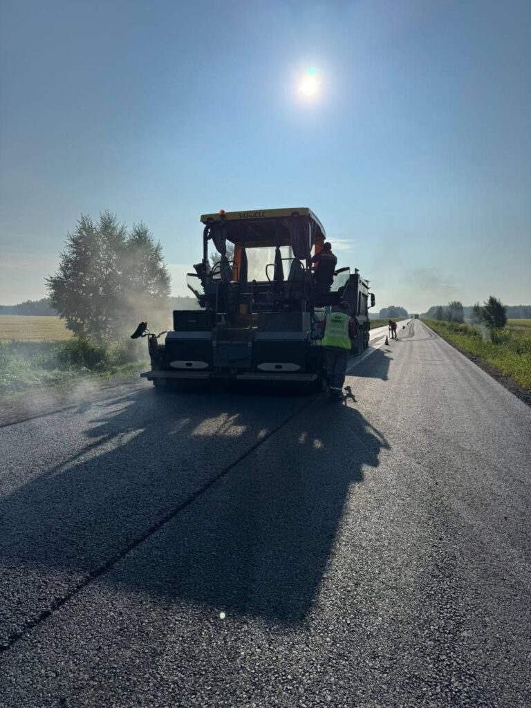 К настоящему времени на объекте специалистами подрядной организации завершено фрезерование старого дорожного покрытия, устранение пучин, устройство ровиков уширения, укрепление дорожного основания методом холодного ресайклинга с применением цемента, а также устройство двухслойного асфальтобетонного покрытия.