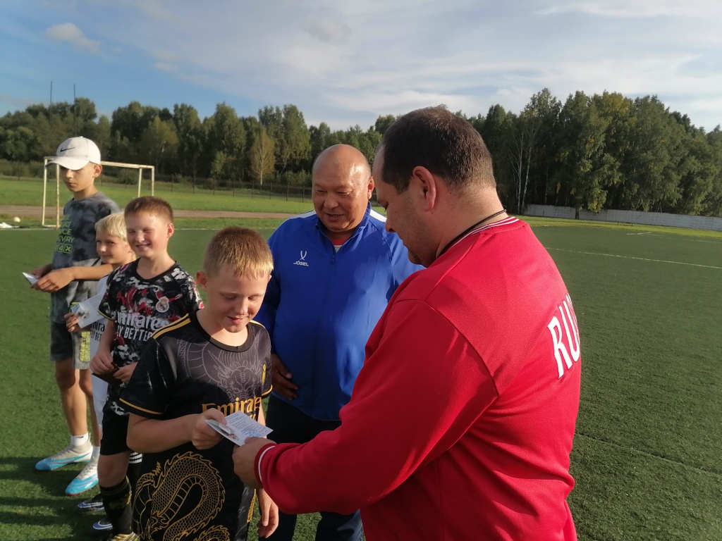 И вот 19 августа в спорткомплексе собрались любители футбола. Да столько, что пришлось разбивать их на шесть команд. К тому же хорошему настроению участников тренировки соответствовала теплая солнечная погода. Константин Германович на параде открытия этого мероприятия вручил знаки ГТО Максиму и Тимофею Худорожковым, Ярославу Голубеву и Матвею Тимофееву.