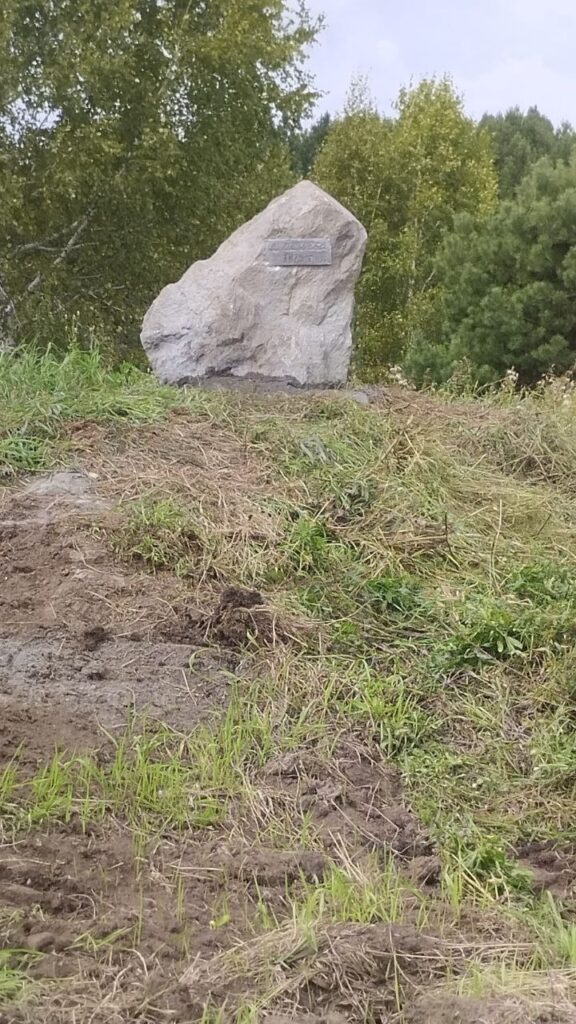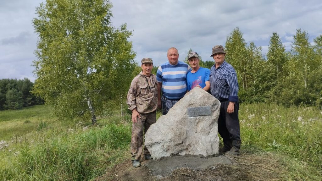 – Мы прекрасно понимали, что для выполнения того объема работ, который запланировали, необходимы денежные средства. Пошли «по кругу», набрали нужную сумму. На эти средства сделали дорогу, укрепили дамбу через пруд и засыпали на нее три машины щебня. Еще в советское время пруд, разделявший деревню надвое, был почищен, а ил, который поднят со дна, уложен на берег. С тех пор эта куча и лежала там. С помощью техники мы ее разровняли. Я изучил в интернете информацию из различных источников и сделал эскиз старообрядческого металлического креста, изготавливали который в Омске. Помогал там со всеми организационными вопросами Сергей Алгазин. Это было два года назад. Тогда же мы привезли крест и установили его на месте, где была деревня. Так как старообрядческого священника в нашем районе нет, то попросили настоятеля Седельниковской церкви отца Сергия его освятить. Он согласился нам помочь. Кроме того, возле кладбища мы установили стол, за которым могут посидеть приехавшие на погост люди, – рассказал житель Голубовки Владимир Седельников. – Чтобы увековечить место, где ранее располагалась деревня, мы задумали установить памятный камень. Искал я его около двух лет. Спрашивал у всех, где его можно взять. И когда уже потерял надежду, седельниковский предприниматель, председатель СПК «Кукарский» Олег Громов сказал, что камень таких размеров есть у него на усадьбе. Две недели назад мы его забрали и увезли во Львовку. Я выгравировал на жестяной пластине год образования деревни – 1825-ый, а также год, когда последний житель покинул деревню – 1975-ый. Правда, погода никак не давала нам завершить нашу почетную миссию. А в воскресенье, 17 августа, небо прояснилось. Тогда мы, прихватив с собой дизель-генератор, последним десантом вместе с Юрием Колодичем, Иваном Алгазиным, Денисом Литвиновым и Алексеем Соломиным выехали в нашу родовую деревню. Залили бетонное основание и на него установили памятный камень. Теперь, проезжая это место, любой путник будет знать, что здесь когда-то стояла деревня Львовка.
