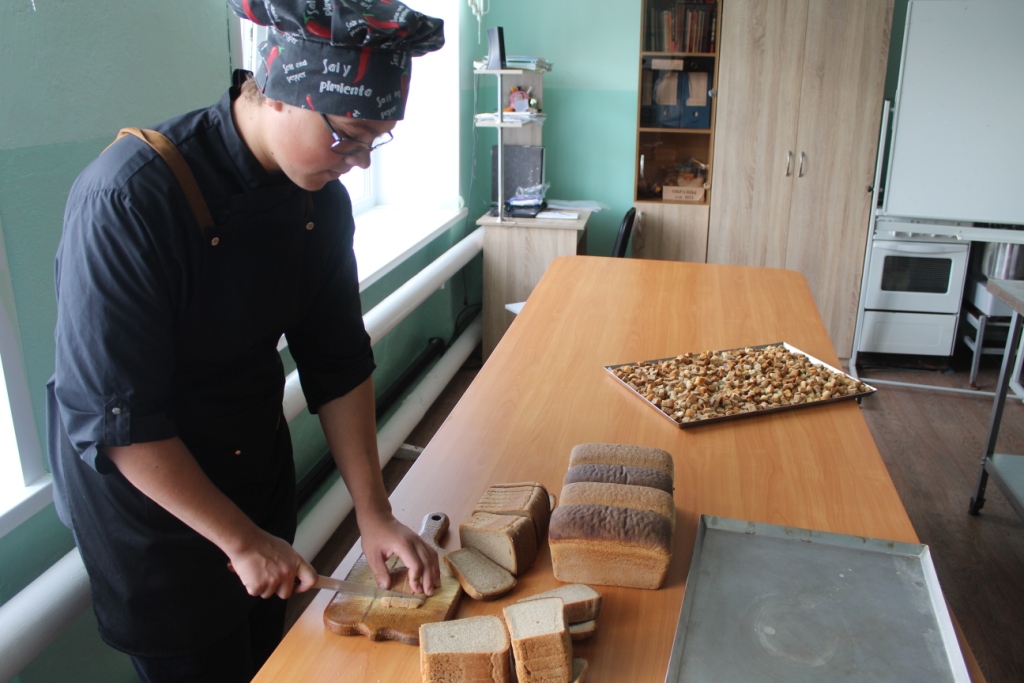 – Хлеб для изготовления сухарей приносят студенты очной и заочной форм обучения, их родители и коллектив техникума. Помогают все. На 10 сентября нам в общей массе принесли уже 58 килограммов хлеба. Студенты режут его на кубики, потом хлеб проходит процесс сушки в печи. Готовые сухари мы закладываем в пятилитровые пластиковые бутылки. Для придания им особого вкуса, кладем в емкости лавровый лист. В пробке для вентиляции проделываем небольшое отверстие, а под нее, чтобы не попала грязь укладываем ватный тампон.