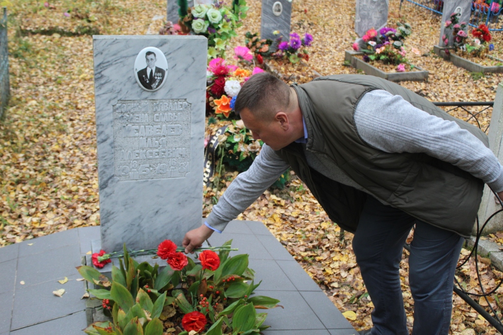 26 сентября в нашем районе побывал Герой России Андрей Тимошенко и его заместитель Николай Бабкин. Это уже четвертый визит Андрея Станиславовича в наш муниципалитет, где он встречается с подрастающим поколением, беседует с ребятами о патриотизме и обязательно навещает могилу полного кавалера ордена Славы Ильи Алексеевича Медведева.