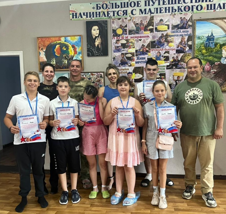 16 июля 2025 года исполняющий обязанности главы Седельниковского района Константин Ткачёв, находящийся в служебной командировке в Луганской Народной Республике, в торжественной обстановке вручил ребятам из города Стаханова дипломы победителей и сертификаты, а также памятные знаки участников муниципального этапа Областного фестиваля для детей-инвалидов «Искорки надежды», проходившего в июне этого года.