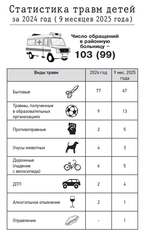 Если же рассмотреть картину в целом, то и эти цифры не окончательные и не полные, так как в статистике, озвученной на заседании КДН, были приведены факты обращений в ЦРБ. А сколько их осталось за кадром? Ведь не с каждой царапиной и ушибом мы идем к врачу.