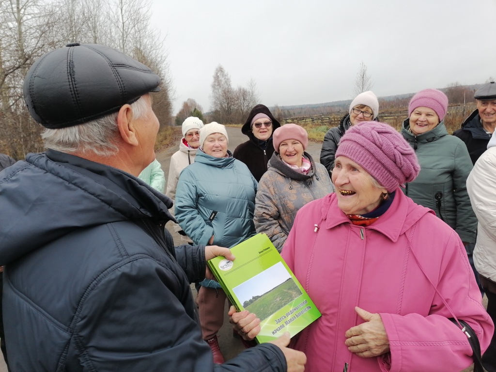 Все эти воспоминания полились рекой, когда туристы высадились у поклонного креста в деревне Богомель. А для Нины Георгиевны у этого христианского знака был подготовлен еще и небольшой сюрприз. Здесь, на ее родине, я, как председатель районной ветеранской организации, вручил ей экземпляр книги «Здесь родины моей начало. Малая Богомель», изданной в рамках краеведческого проекта «Таежный уголок России – Седельниковский район». Накануне эту книгу привезли в наш район из типографии.