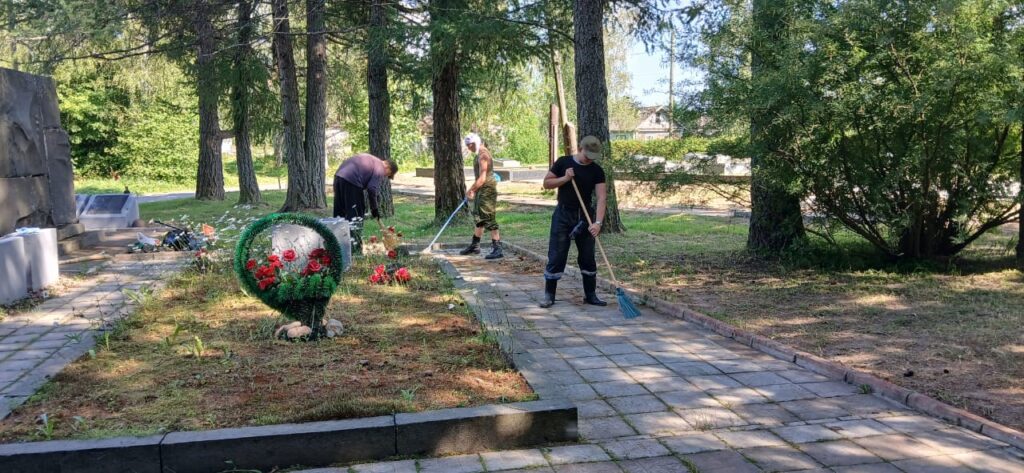 В течение дня ребята помыли памятники и мемориальные плиты, пропололи траву вдоль дорожек, между плиткой и на клумбах, убрали скошенную траву с газонов, подмели дорожки. В знак благодарности гостеприимные хозяева из сельской администрации накормили детей вкусным обедом, а на десерт приготовили местный кулинарный бренд – традиционный для Карелии пирог с брусникой.
