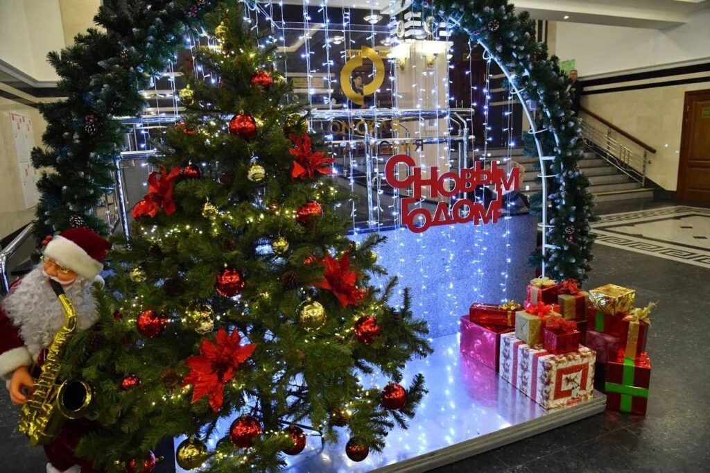 По традиции, праздничная программа начинается уже в фойе Концертного зала, где юных гостей ждёт интерактивное общение с Дедом Морозом и Снегурочкой.