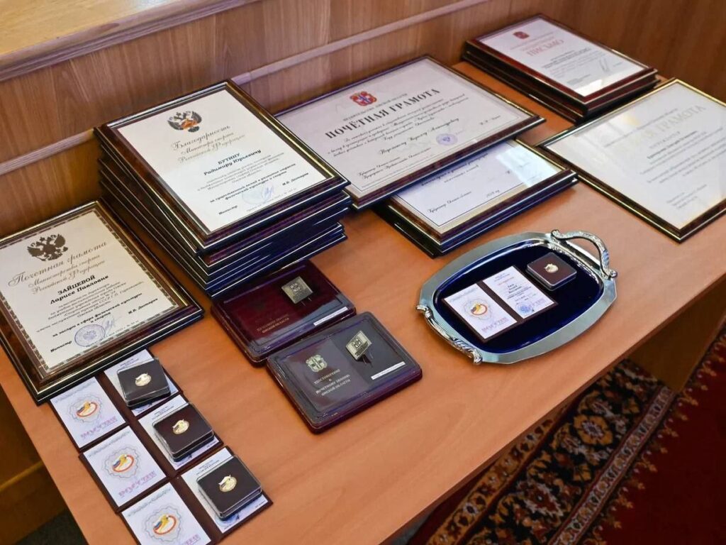 За многолетнюю плодотворную работу и успехи в развитии физической культуры Виталий Хоценко и Александр Артемов вручили награды и знаки отличия представителям спортивных организаций, тренерам, специалистам.