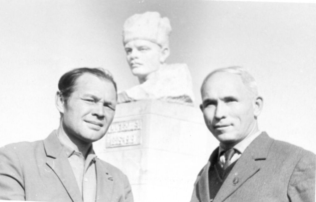 На снимке – Леонид Логинов (слева) и омский композитор Борис Ярков у бюста Артему Избышеву